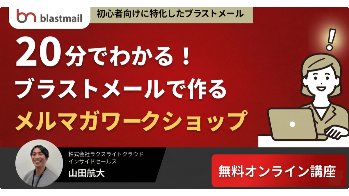 メルマガをこれから始める方や、ブラストメールに少しでも興味をお持ちの方はぜひ、ご参加ください。